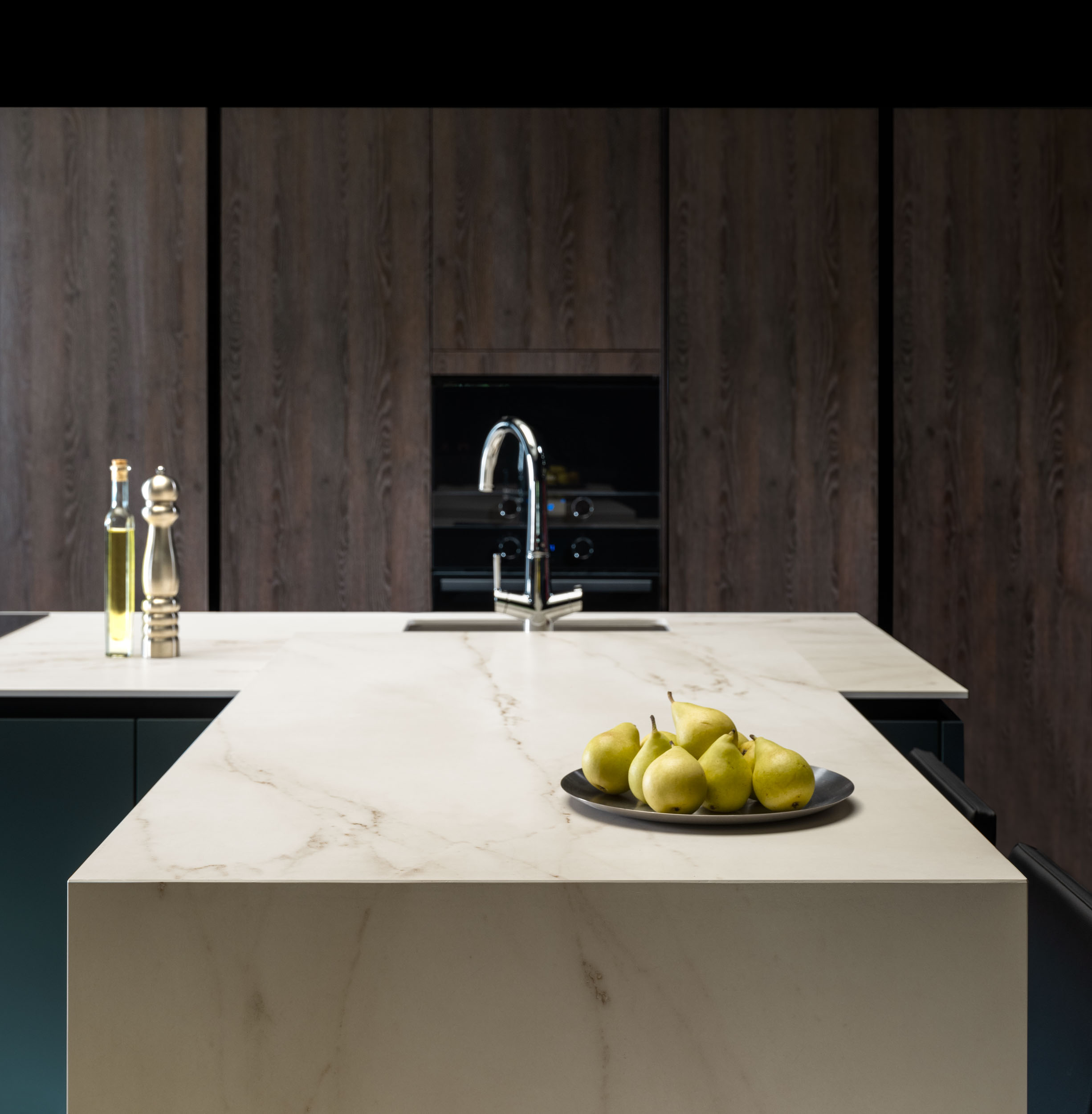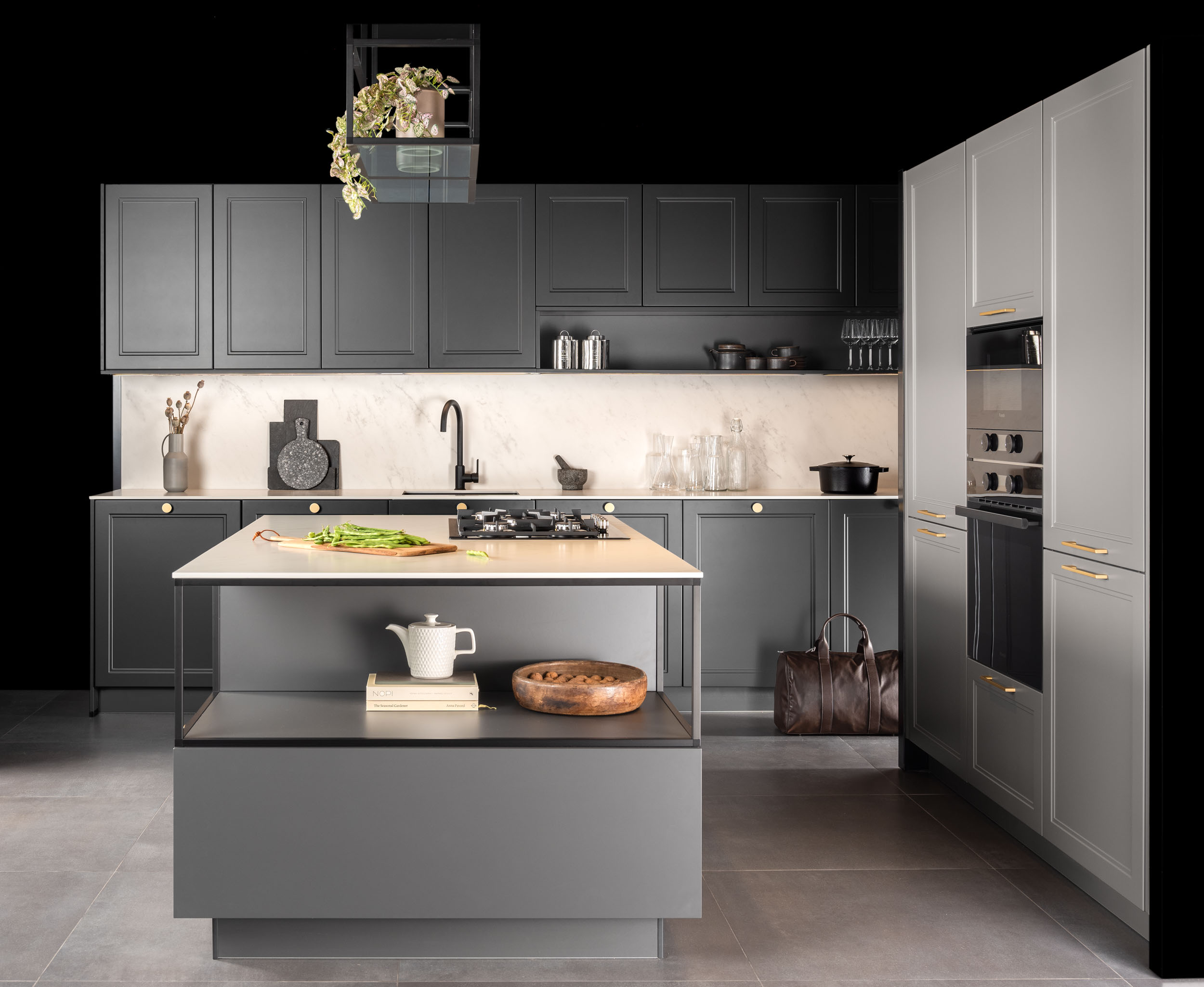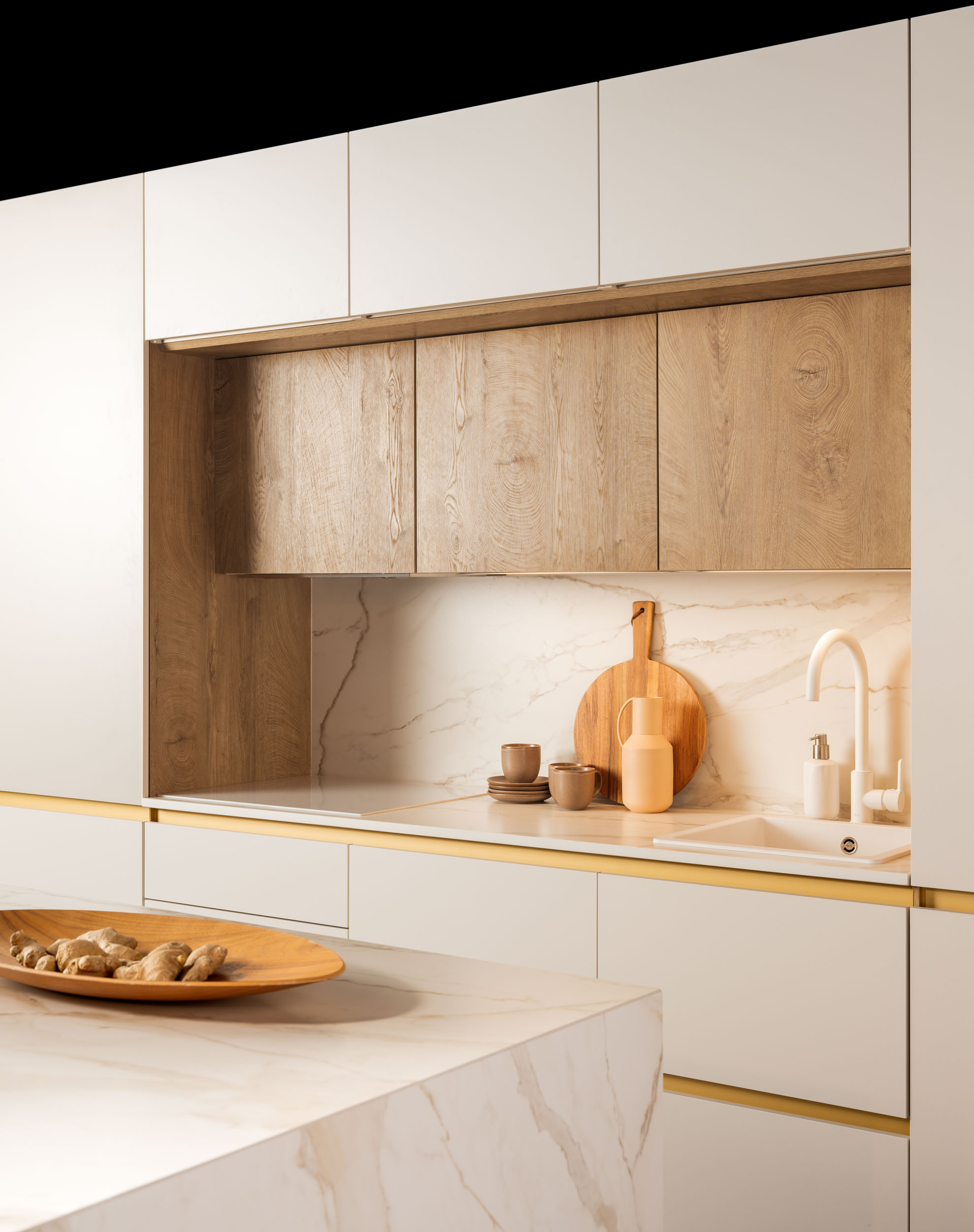 Cuando hablamos de vitrinas, nos referimos al interiorismo aplicado, ya que son muebles diseñados para mostrar su contenido y convertirse en expositores de vajillas o cristalerías. Con o sin luz, diferentes alturas y personalización de interiores, las opciones son infinitas. Las puertas escamoteables permiten acercar aún más la cocina al comedor. Con las puertas cerradas, se consigue una línea de muebles limpia y elegante. Al abrirlas, se revelan todas las opciones disponibles, pudiendo tener en el interior el fregadero o incluso la zona de cocción.
