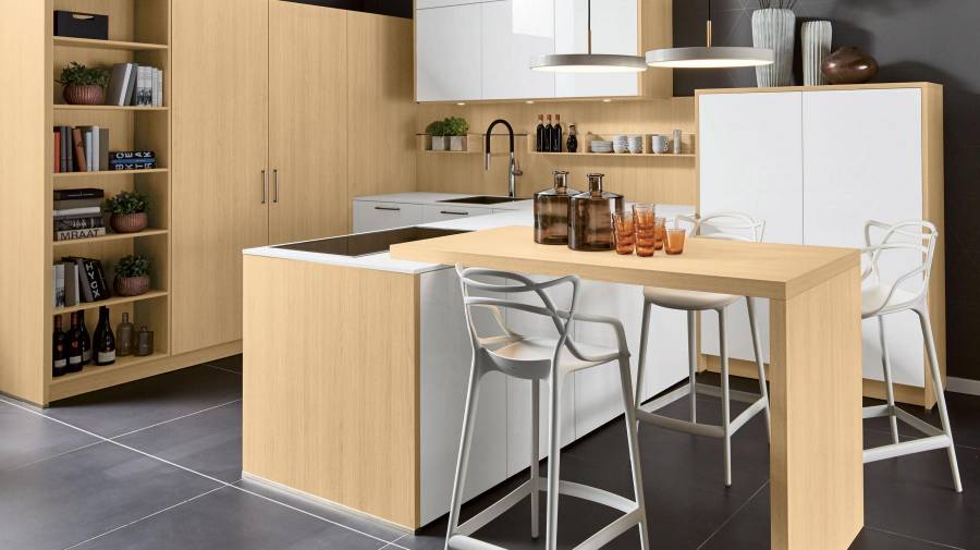 Según las necesidades personales, podemos diseñar una zona más social o de trabajo, ubicando la zona de cocción o el fregadero en ella, creando un espacio funcional y estéticamente agradable. Las islas y penínsulas son las zonas más deseadas en el diseño de cocinas. Dependiendo del espacio disponible, podrás elegir una u otra opción. Además, estas estructuras sirven como separación respecto al salón o comedor en cocinas abiertas.