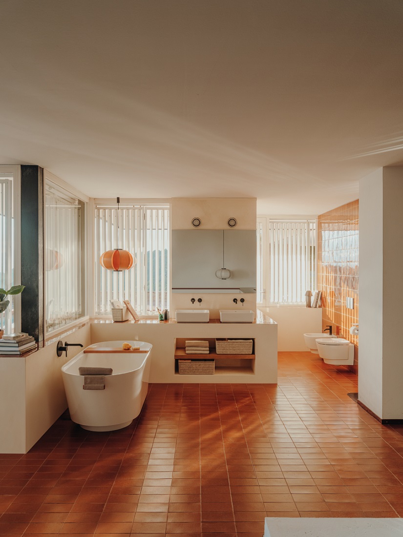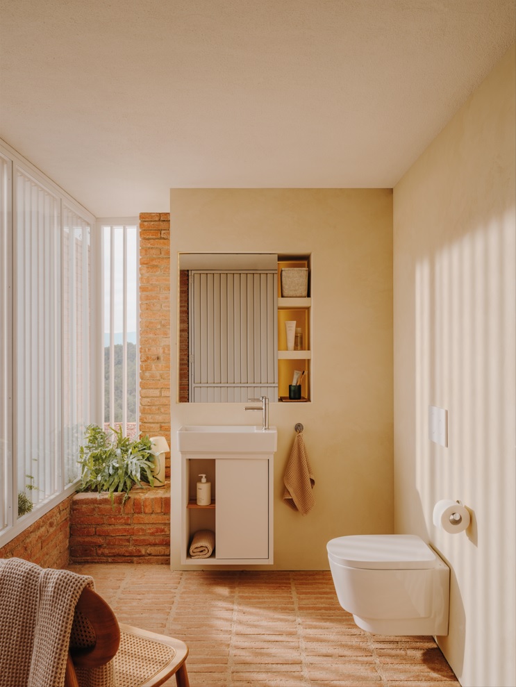 La colección Tura, diseñada por Andreu Carulla, se presenta en un espacio definido por un techo escultural, azulejos cerámicos y texturas terrosas y un juego de luces y sombras que reflejan la arraigada conexión de la colección con la arquitectura barcelonesa del siglo XX. Sencilla y sobria, de contornos suaves y con gran atención al detalle y la funcionalidad, esta colección incluye lavabos, bañeras, inodoros, bidés, muebles de baño y accesorios de iluminación y almacenaje, y cuenta con las últimas tecnologías y materiales para el confort y la sostenibilidad, como los acristalamientos Roca Rimless® y Supraglaze® para una máxima higiene. Una de las principales innovaciones de la colección es el desagüe oculto en los lavabos y los muebles están disponibles en una gama de colores que incluye el terracota, el blanco roto y el gris.