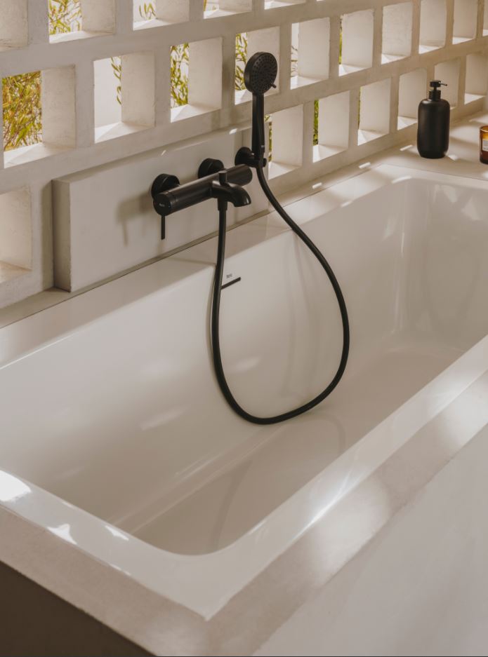 Un cuerpo cilíndrico esbelto y unamaneta rectangular plana constituyen la base para el diseño de la grifería Ona.