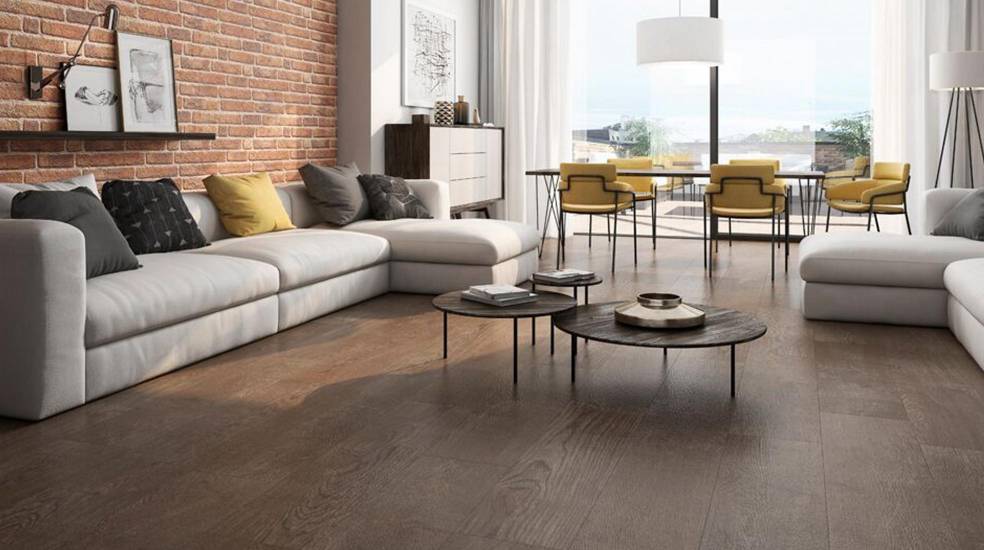 La naturalidad de la madera con las más altas prestaciones del suelo porcelánico.
