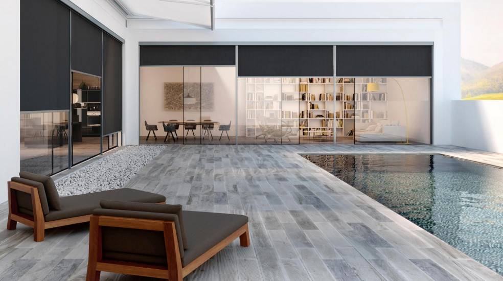 Sobria y versátil, Borneo destaca por la seguridad que ofrecen sus piezas antideslizantes Deck, que reproducen un entarimado en relieve ideal para zonas húmedas como entornos de piscina. Tiene cinco acabados posibles: Gris, Fresno, Roble, Taupé y Sapelli.
