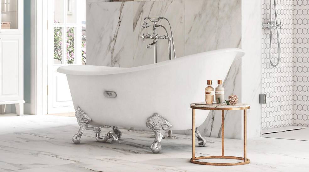 Con su refinado diseño en hierro fundido y sus patas cromadas de estilo retro, la bañera vintage Carmen te anima a soñar en tu baño pequeño, con su formato de 1600 mm disponible en seis acabados: Blanco, Gris, Cobre, Azul Marino, Burdeos o Negro.