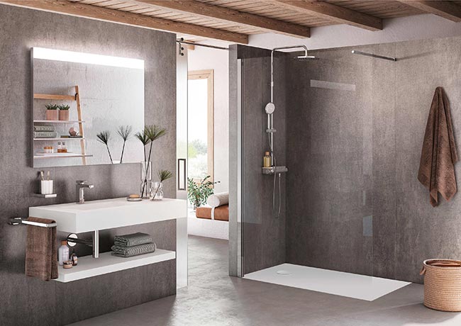 Para terminar, si al avanzar en tu particular decoración de baños pequeños llegas a obsesionarte con las dimensiones de los productos sanitarios, descubre que hay soluciones como los platos de ducha a medida ideales para adaptarse a cualquier superficie. Disponibles desde un mínimo de 1000×600 mm, los platos de ducha de porcelana Cratos están fabricados con el revolucionario material Senceramic®, que les confiere una agradable textura rugosa en hasta cinco acabados a color. Si te decantas por la plasticidad y suave tacto de Surfex®, los platos de ducha antideslizantes Modo pueden cortarse desde un tamaño de 800×600 mm, dando forma a una cálida superficie en blanco mate que te proporcionará máxima seguridad en el baño.