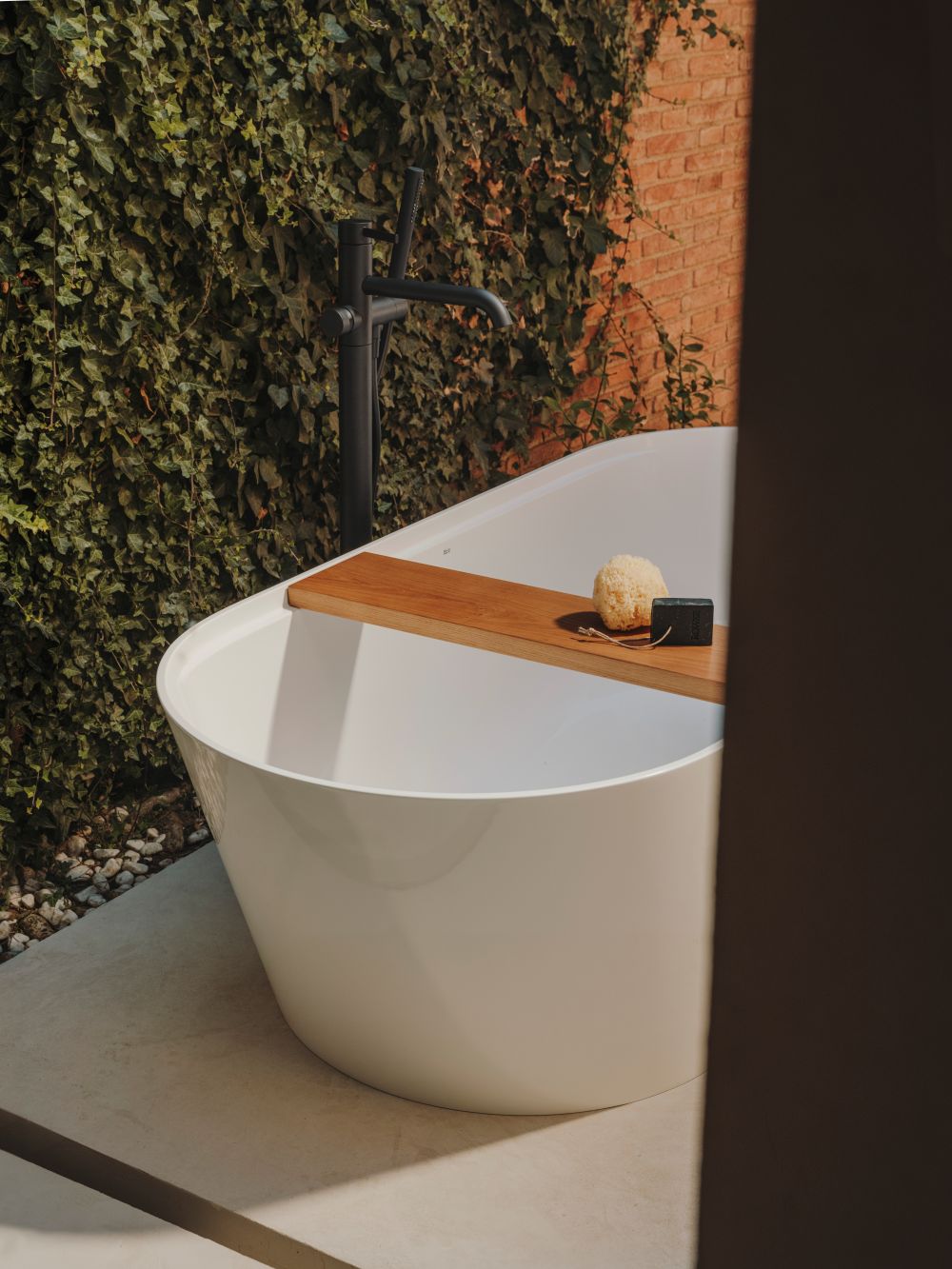 A menudo, los baños modernos suelen actuar como espacios de bienestar y relajación y una bañera bien diseñada contribuye a crear esa experiencia. Las funciones avanzadas, como los chorros de hidromasaje de la bañera de la colección Vythos, alivian los músculos doloridos y proporcionan una reparación profunda. Los pequeños detalles, como elapoyacabezas de Tura o su bandeja de madera de origen sostenible para colocar un libro o una taza de té, convierten la experiencia del baño en algo especial. Contar con una bañera profunda en la que poder sumergirte completamente, como Ona, Ariane o Raina, también es un pequeño lujo.
