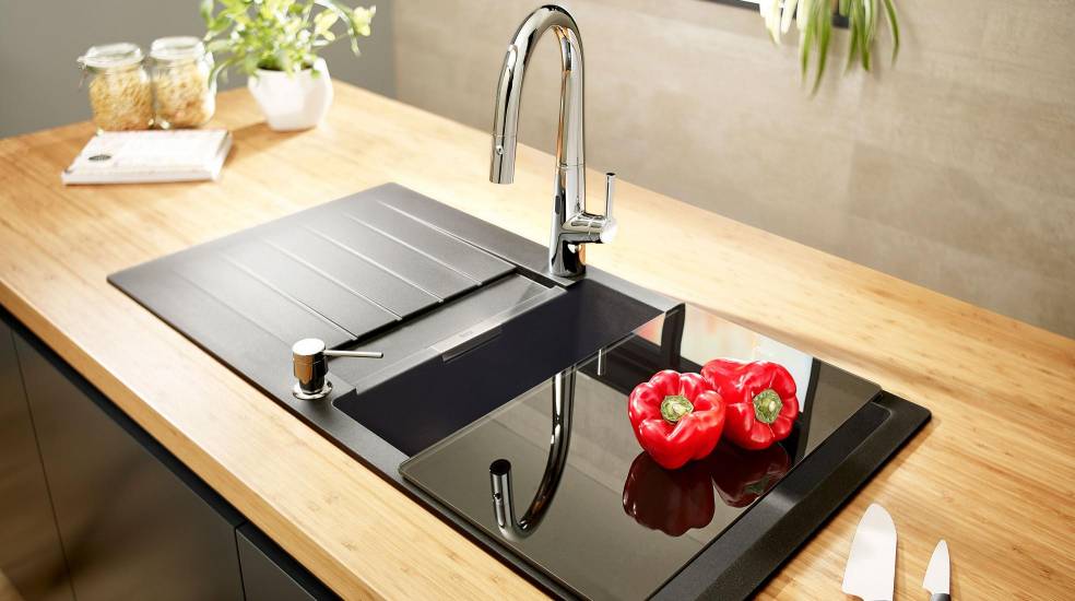 A la elección del fregadero con escurridor más adecuado para cada hogar, se suma la posibilidad de añadir complementos como la tabla enrollable para cortar alimentos sobre el mismo fregadero o la cesta de varilla inoxidable para lavar frutas y verduras con total comodidad.
