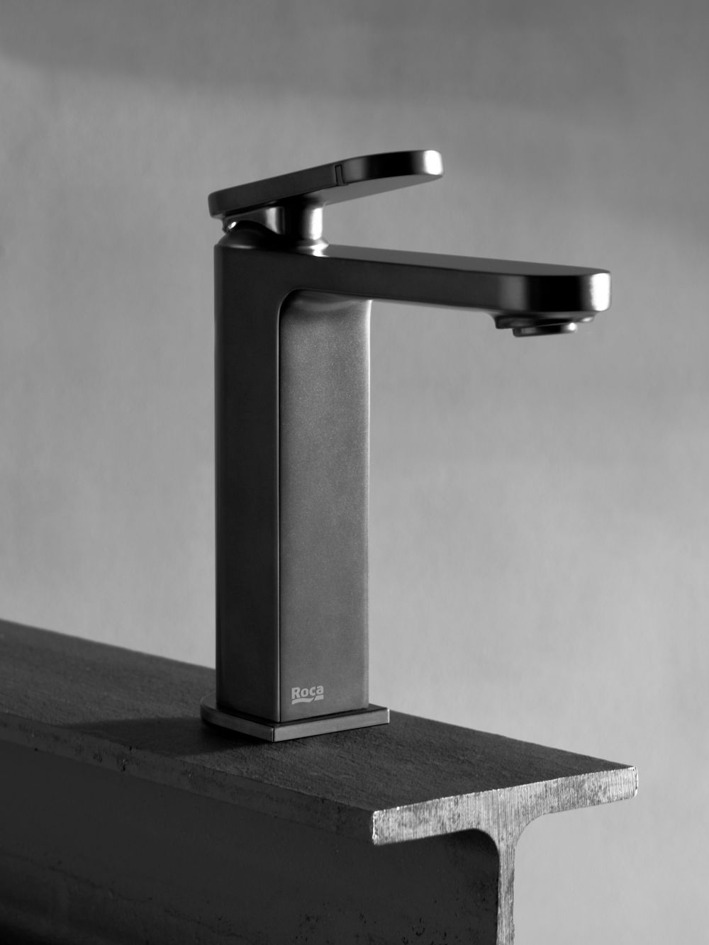 Grifería para lavabo Naia con caño alto y cuerpo liso en negro titanio
