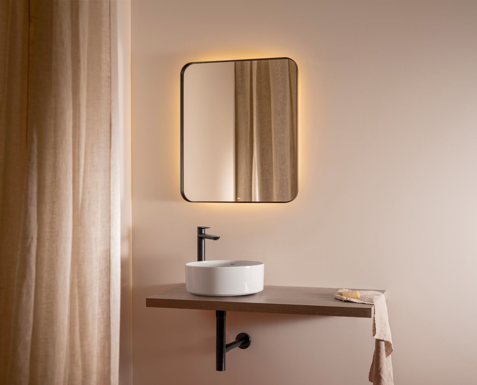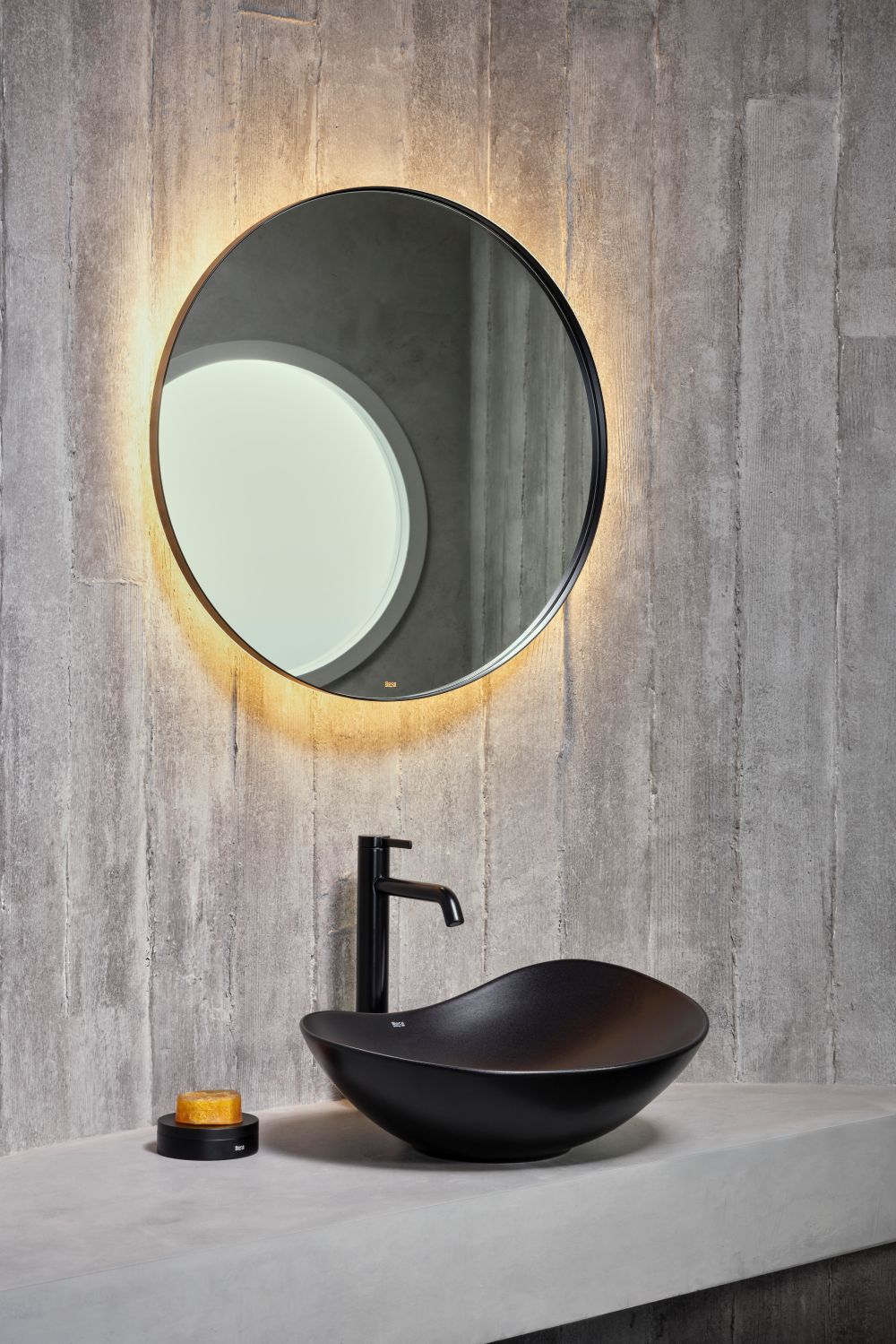 La iluminación suele pasarse por alto, pero es uno de los elementos más adecuados para realzar el color. La luz cálida resalta los tonos ámbar y tierra, mientras que la luz más fría resalta los grises y verdes. Un simple cambio a los espejos LED, como los de las colecciones Iridia, Luna o Eidos, puede transformar por completo el ambiente de tu baño. Muchos cuentan con la opción de ajustar la temperatura de la iluminación para adaptarla a tus rutinas y a cada momento del día.
