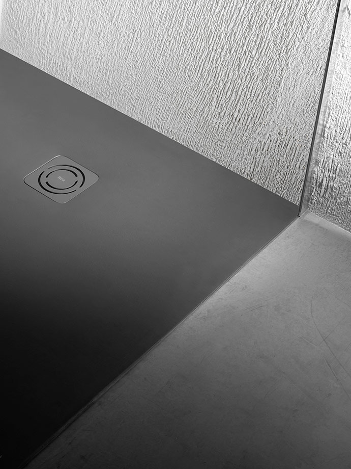 Uno de los mayores avances en el diseño de duchas es el plato de ducha a ras de suelo. Sin barreras visuales ni físicas, la ducha se integra totalmente en el interiorismo del cuarto de baño, creando un espacio continuo que logra que la estancia parezca más grande al instante. Los platos de ducha extraplanos de Roca encajan a la perfección en la estética del baño contemporáneo. El modelo Cratos cuenta con un acabado antideslizante que le confiere un elegante aspecto texturizado. Asimismo, la rejilla de desagüe de Terran está disponible en una selección de acabados y diseños, lo cual supone una ventaja para quienes se preocupan por el más mínimo detalle en el diseño de su baño. Con su estética minimalista, Pyros ofrece un punto adicional de sofisticación con un sistema de desagüe integrado en forma de una fina abertura horizontal; una innovación total en el diseño de platos de ducha.