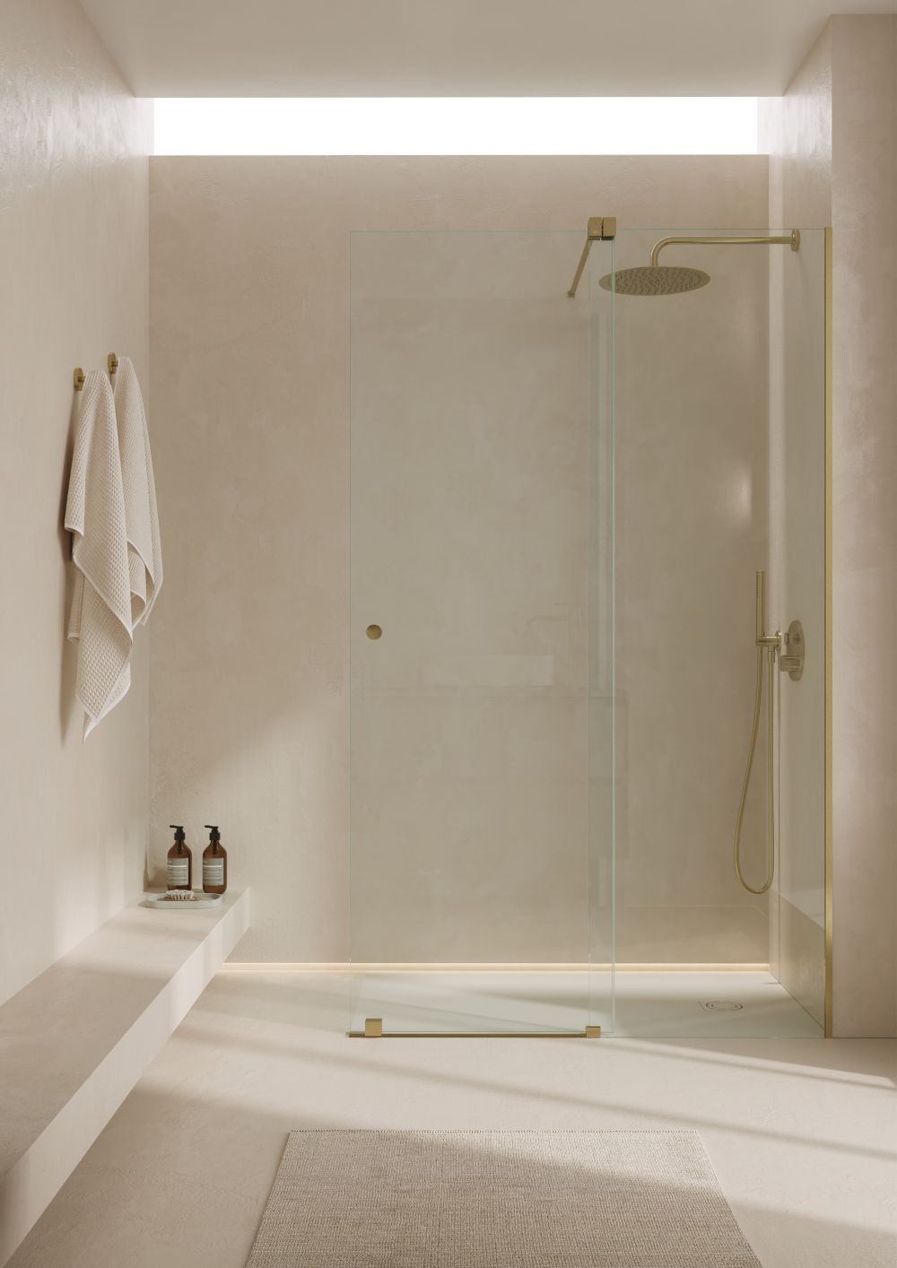 Los platos de ducha son un elemento esencial en las duchas walk-in, pues aportan continuidad y sofisticación al espacio. El color, la textura e incluso el diseño del desagüe contribuyen a crear una estética determinada en el baño e influyen en nuestra experiencia de ducha. Los platos de ducha Terran y Pyros se instalan a ras de suelo y es posible personalizar su tamaño para crear una sensación similar a la de un spa dentro de la ducha. Fabricados en Stonex®, su superficie antideslizante tiene una textura que recuerda a la piedra y resulta agradable al tacto, mientras que la gama de acabados, desde el negro mate al perla, pasando por el café o el onix, te permite definir el estilo del espacio de baño.