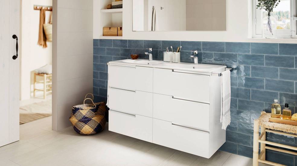 Cuando la casa se llena de gente cada centímetro cuenta. Victoria-N es un mueble de baño con dos amplios cajones que -en la versión Family- puede ampliarse para colocar un tercero. Combinable con un lavabo oval o cuadrado, su diseño integra un gran volumen de almacenaje y una estética contemporánea. En línea con su total practicidad, la colección se amplía con colgadores y toalleros que complementan el orden en el baño.