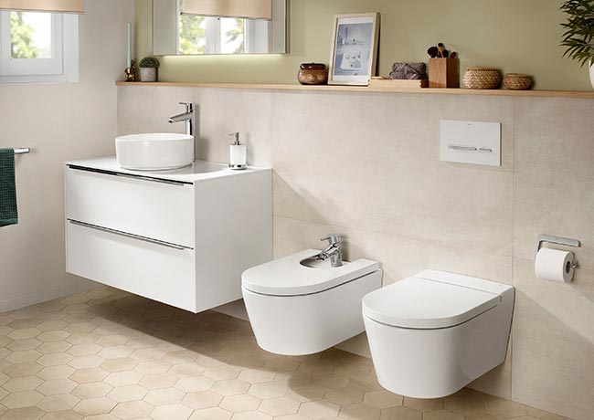 Doble posibilidad de elección con la colección Inspira, que ofrece su diseño redondo Round y el cuadrangular Square para que puedas encajar sus bidés suspendidos o adosados a pared en cualquier estilo y configuración de baño.