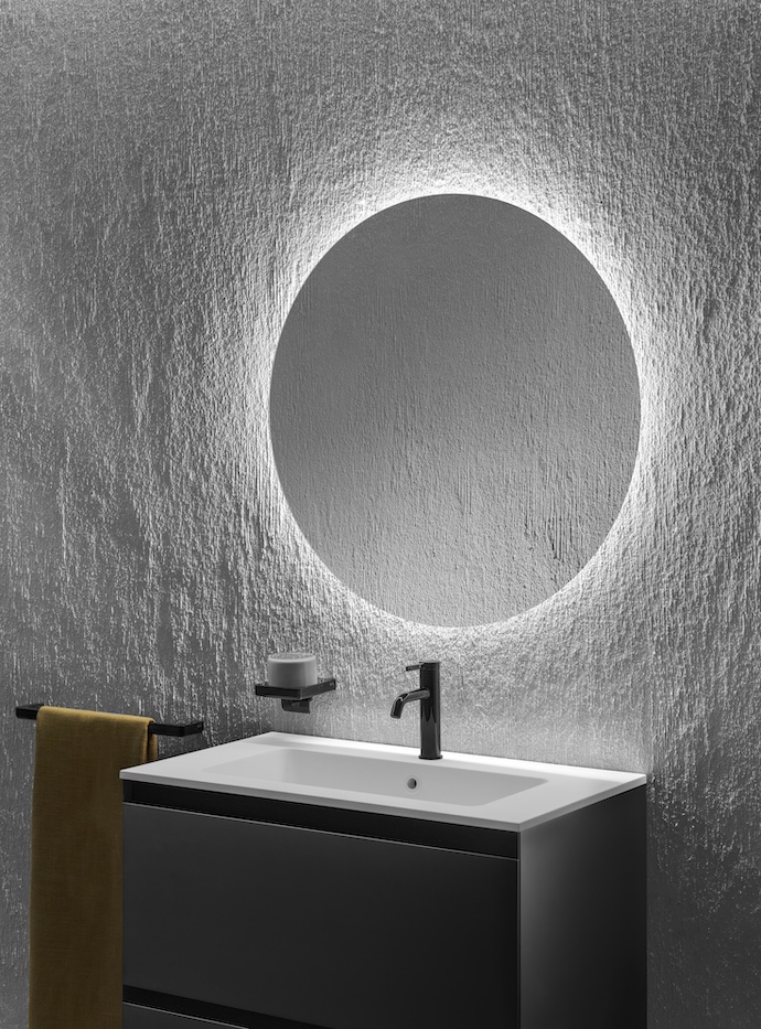 La iluminación es un factor esencial a la hora de generar una estética determinada en el baño, pues realza el atractivo visual de este espacio destacando los elementos de diseño más importantes. Una iluminación uniforme y de gran intensidad logra que un baño pequeño parezca más espacioso, mientras que un foco de luz dirigido crea profundidad en un baño con más metros. Así, un espejo bien iluminado aporta funcionalidad y, además, puede convertirse en un elemento decorativo que atraiga todas las miradas. La gama de espejos con luz LED Iridia cuenta con modelos rectangulares y circulares con iluminación perimetral integrada. Su audaz diseño aporta un plus de sofisticación al espacio y crea las condiciones de iluminación perfectas para las rutinas diarias. Si buscamos un efecto más suave, los espejos con luz Luna Frame y Luna Ambient ofrecen una iluminación tenue con modelos circulares, ovalados y cuadrados retroiluminados. Por otro lado, Eidos combina tres funciones en un mismo modelo: almacenaje, espejo e iluminación LED de baño integrada. Este es un producto que destaca por su eficiencia, lo que permite ahorrar en la factura de la luz. Para una iluminación más directa, el aplique de baño Starlight es el complemento perfecto para dotar de luz a cualquier espejo.