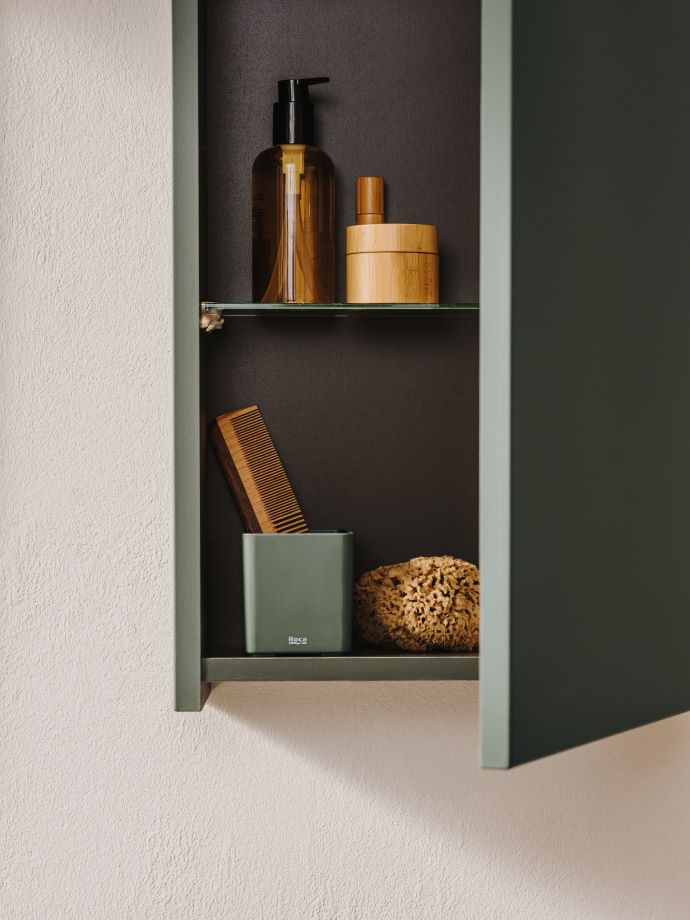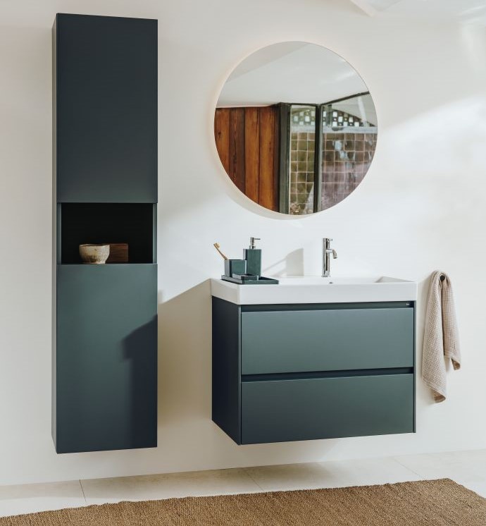 Los armarios altos son  muebles auxiliares multifuncionales que ofrecen opciones de almacenaje para artículos de diversos tamaños. La columna Ona, con estante abierto, aporta personalidad al que de otro modo podría ser un espacio anodino. Este mueble es ideal para guardar y tener siempre al alcance de la mano tus artículos de aseo, toallas y productos de limpieza. El original diseño del estante abierto es perfecto para añadir un elemento decorativo, como una planta, una vela o un cuenco de cerámica artesanal. El acabado verde mate o los acabados en madera natural aportan calidez y elegancia a cualquier espacio.