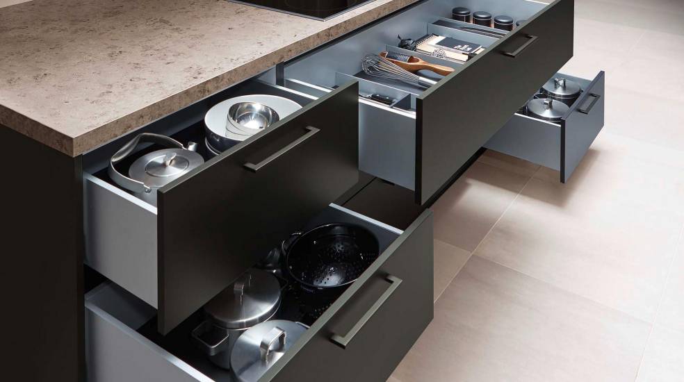 Abierta al salón, con muchos metros o reducida y compacta, la cocina es un espacio protagonista en el que cada elemento cuenta. Porque el interior puede ser tan importante como la superficie, las bandejas giratorias son grandes cómplices del almacenaje al aprovechar al máximo la profundidad de los armarios. Las columnas con gavetas extraíbles permiten clasificar mejor los envases y para presumir de cristalería, nada mejor que un sistema de retroiluminación en un módulo con puertas de cristal. Separadores interiores de diferentes dimensiones, baldas intercambiables para decidir la ubicación de los recipientes y versátiles cajones con diversas medidas y capacidad de carga de hasta 70 kilos amplían las posibilidades en la configuración de cocinas más confortables y personalizadas.