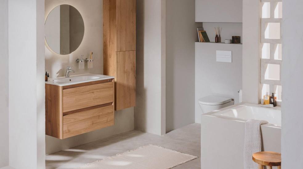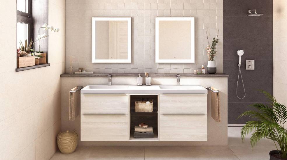 Porque un mueble de baño moderno debe adaptarse a las particularidades de cada hogar, en Roca hay tantas opciones de configuración como personas o familias. Para los que adoran el orden pero no quieren renunciar a tener algunas cosas a la mano, Storia propone módulos abiertos con estantes que, en combinación con puertas o cajones, permiten armar una propuesta completamente personalizada. Las familias prácticas, por su parte, encuentran en Tenet un mueble con lavabo incorporado que, con dos o cuatro cajones, puede resolver sus necesidades de almacenaje.