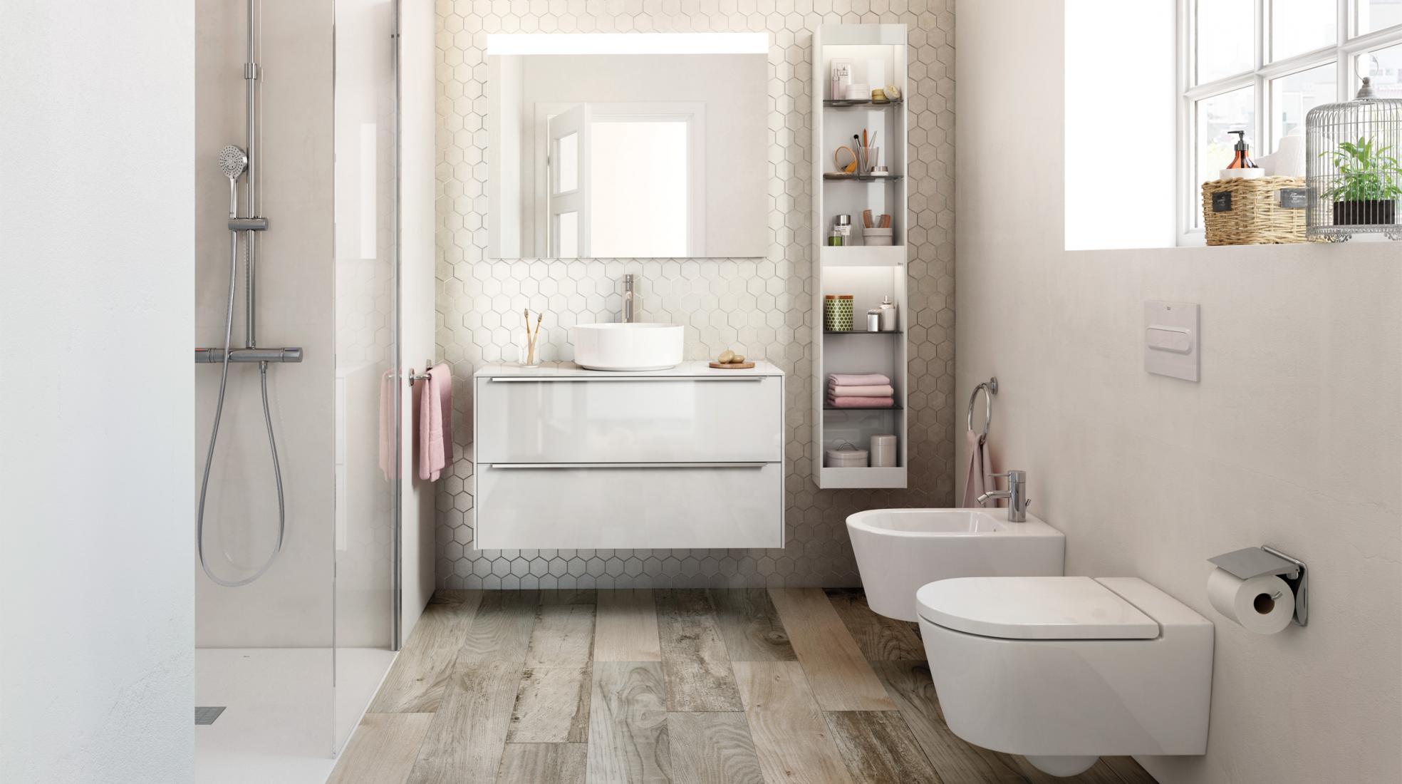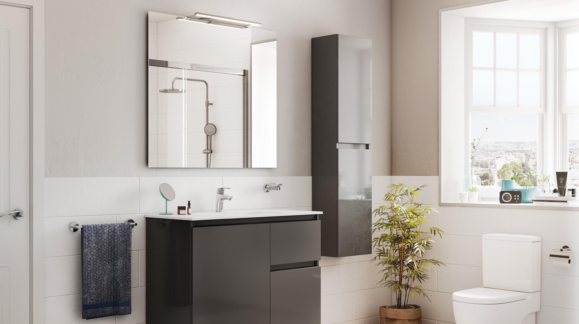 Si tenemos un baño pequeño, hay módulos columna de tamaño más reducido idóneos para sacar partido a cada centímetro instalándolos sobre un inodoro o un bidé. Sírvete de estos armarios de baño compactos para guardar artículos de higiene que ocupen menos o, por ejemplo, como botiquín.