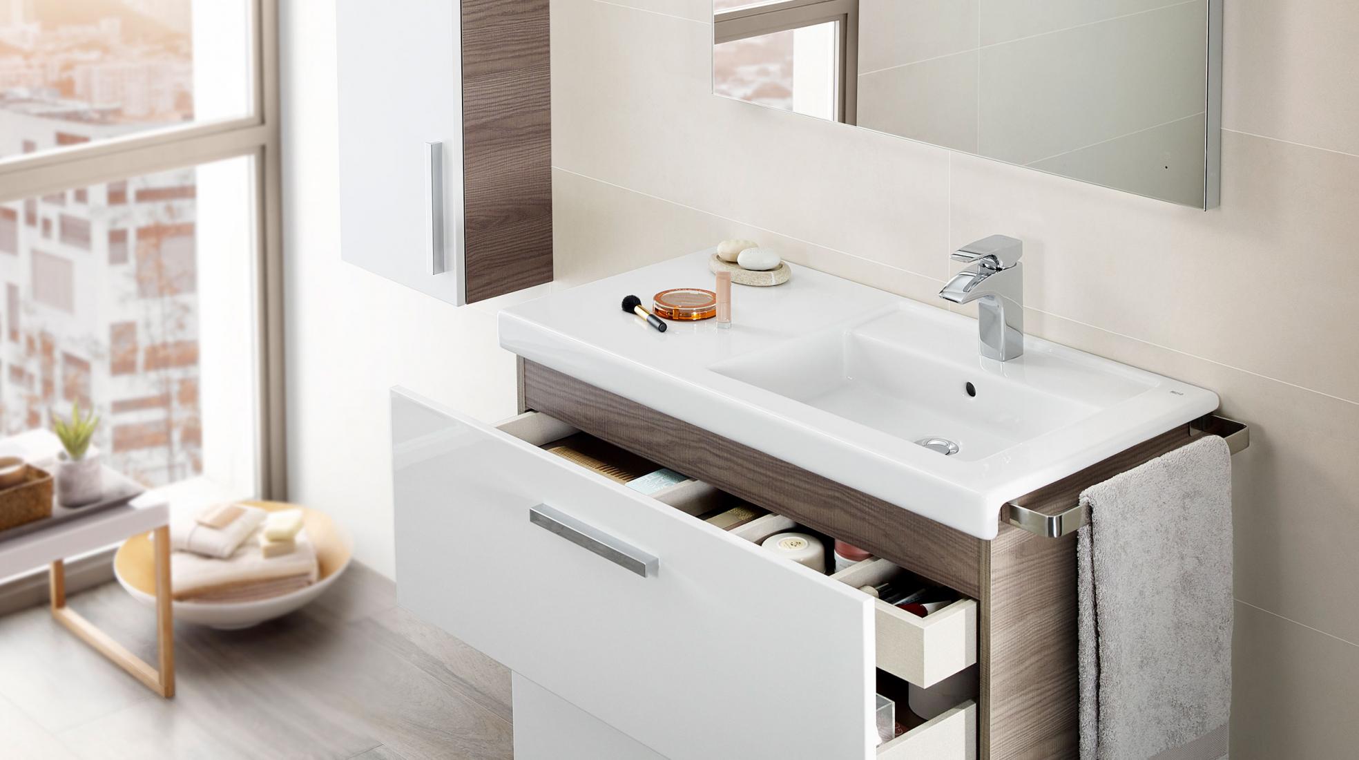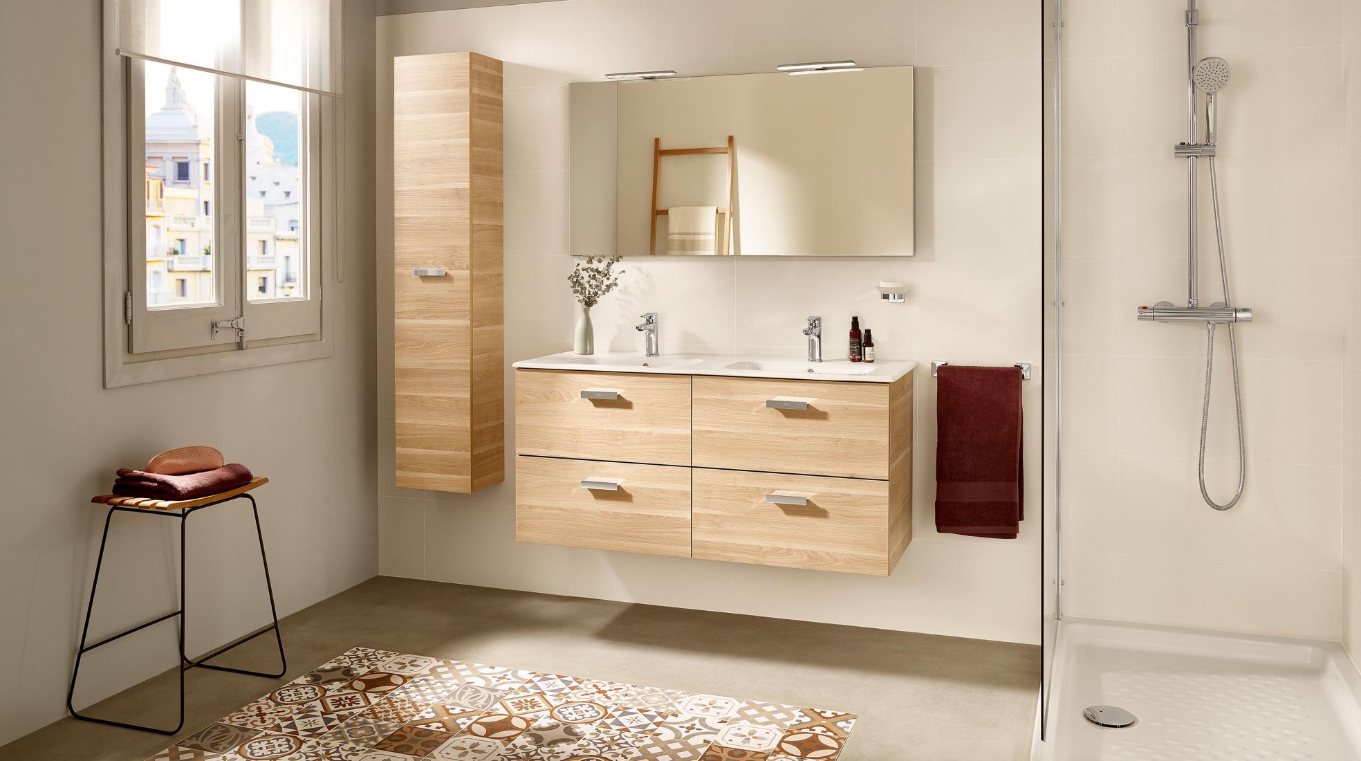 Finalmente, has de saber que entre los muebles auxiliares de baño encontrarás soluciones funcionales que no requieren instalación. Con la colección Suma, podrás disponer de módulos de baño que reposan directamente sobre el suelo y que son ideales para rellenar ese rincón que estabas desaprovechando. Lo mejor de estos módulos auxiliares es que puedes elegirlos con ruedas para desplazarlos a tu antojo según tus necesidades.