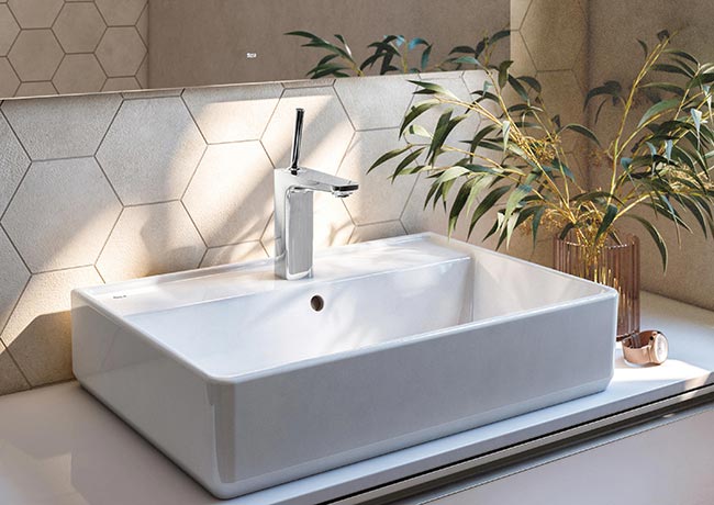 Disponible en dos alturas de lavabo y también en versión empotrable, la grifería de lavabo Pals puede instalarse en lavabos murales, sobremueble, de encimera y sobre encimera. También con propuestas para baño y ducha, el modelo de ducha empotrable cuenta, además, con el mecanismo RocaBox Universal que permite su instalación en paredes de tan solo 7 cm de grosor.