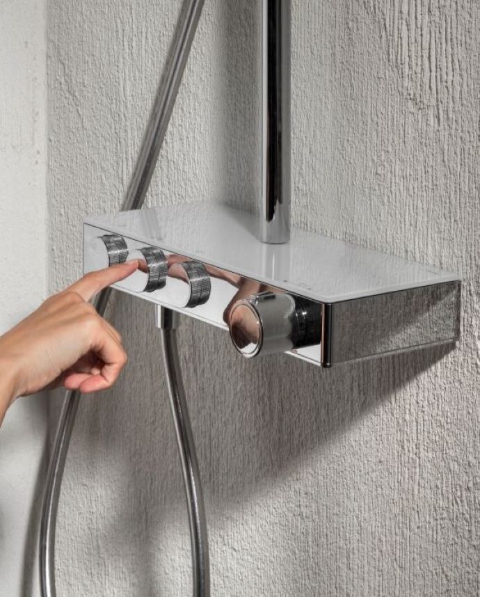 Si necesitas más opciones de caudal de agua, piensa en instalar un kit o una columna de ducha. Estos sofisticados conjuntos, como los de las colecciones Index T-Switch y Even, combinan un rociador superior con una ducha de mano e incluyen grifería termostática, jets corporales y diferentes tipos de caudal. Las duchas de mano Plenum y Stella cuentan con la función Tonic, que ofrece un masaje corporal estimulante mediante jets graduales. Asimismo, Plenum dispone del efecto micro burbuja, que permite realizar un suave y profundo lavado facial y corporal. Ideales para quienes buscan relajación y versatilidad, estos kits de ducha ofrecen una experiencia a la medida de cada usuario.