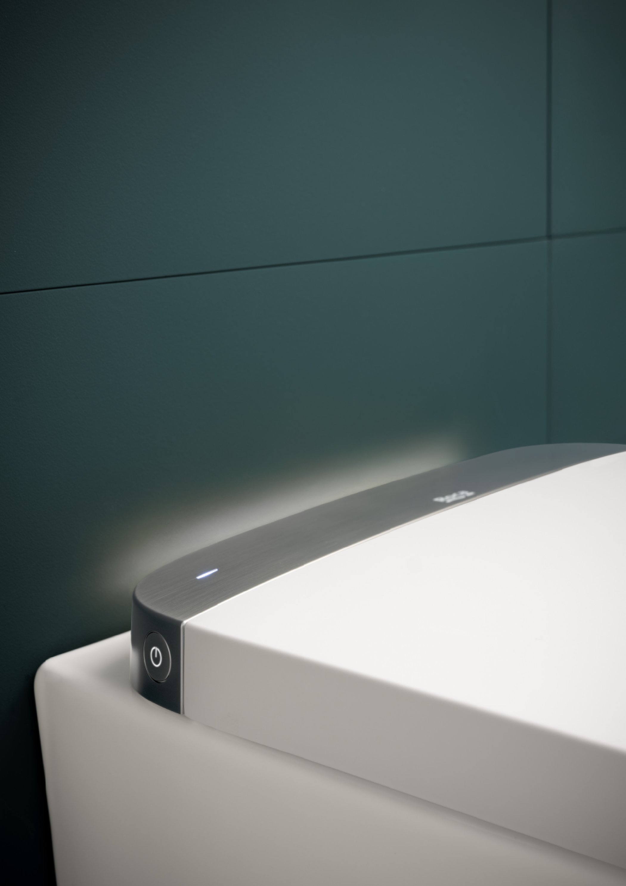 In-Wash® Vorea es un ejemplo de elegancia con sus curvas suaves y líneas marcadas que aportan frescura al espacio de baño. La parte posterior del asiento, con su singular textura, color y recubrimiento PVD en acero inoxidable cepillado, añade un toque de sofisticación al diseño del smart toilet.