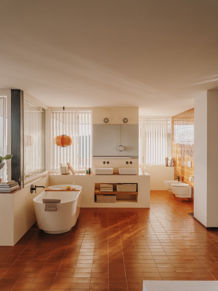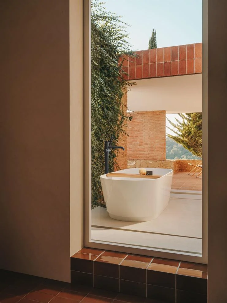 La bañera Tura es a la vez espaciosa y ligera, y su diseño ergonómico está pensado para el descanso y la relajación. Su forma de acople única está inspirada en los voladizos arquitectónicos, dando la impresión de que la bañera se encuentra suspendida en el aire. Está fabricada con Stonex® , un material innovador que permite formas precisas, incluyendo bordes delgados y lineales que han sido hábilmente diseñados para sostener elegantemente la bandeja soporte de madera.