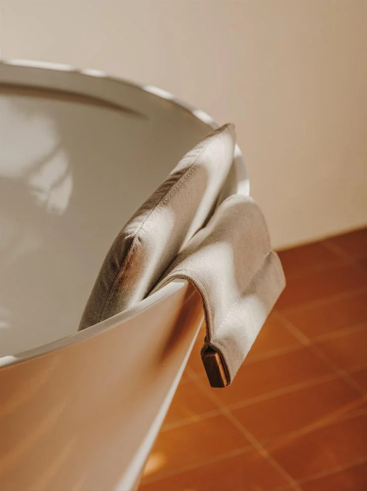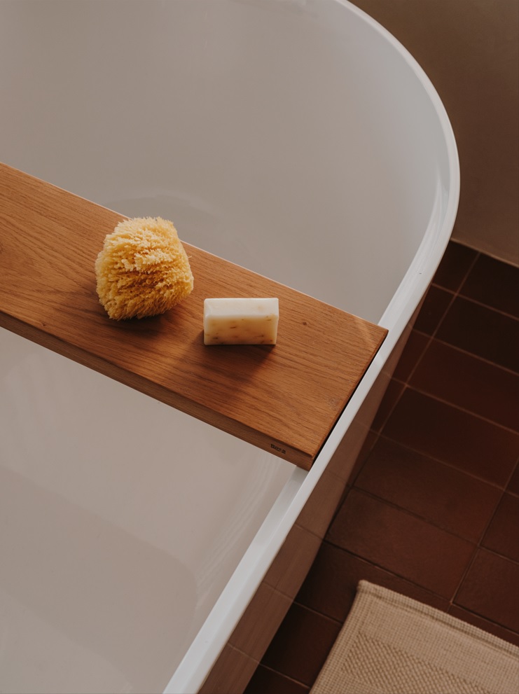 La bandeja de madera de origen sostenible encaja en el borde de la bañera y ha sido diseñada para quedar perfectamente enrasada. Es una pieza funcional y estética que complementa el diseño de la bañera y añade un elemento cálido y natural al baño.