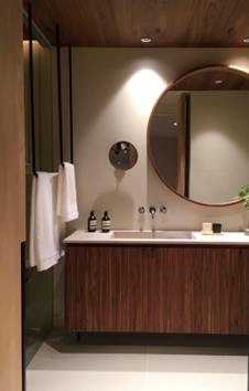 La atmósfera exclusiva de la tienda y el hotel incorpora a la perfección la esencia de los productos Roca, fusionando el estilo y la funcionalidad. Al establecerse como objetivos primordiales la búsqueda de la excelencia y la creación de una experiencia inolvidable, era necesario seleccionar soluciones de baño que priorizaran la eficiencia energética, la accesibilidad y la durabilidad. En la elección de las diversas piezas, desde duchas de mano con diferentes funciones hasta duchas con efecto spa, se tuvieron en cuenta múltiples aspectos para lograr unos baños con un diseño visualmente atractivo y en línea con el hotel.