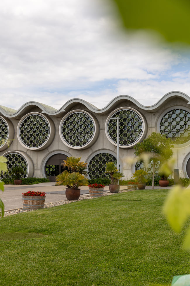 Numerosos elementos arquitectónicos del hotel se inspiran en las formas de las uvas y las burbujas, que aparecen esculpidas en la cubierta, los techos y los suelos del edificio, además de ornamentar las fachadas. Esta geometría, aparte de atraer a los visitantes al interior del edificio, también los conecta con el entorno inmediato. Gracias a su avanzada tecnología estructural, el propio edificio se convierte en un elemento versátil que puede contener y liberar espacios para distintos usos.