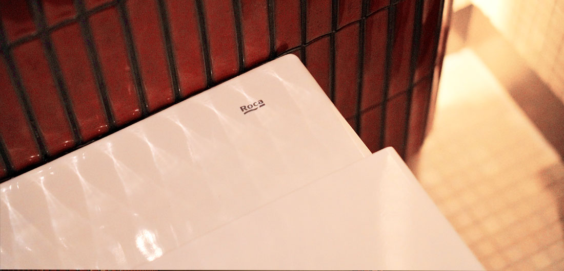 | Productos Roca | Dosificador de jabón o gel Public con sensor (700 ml), desagüe para lavabo de 1 1/4", desagüe universal de click-clack Aqua, lavabo sobre encimera The Gap Square, llave de corte de 1/2"-1/2" Aqua, urinario electrónico Rimless Proton, asa de baño recta Access Comfort, sistema de instalación In-Wall Duplo WC One, escobillero de pared Victoria, percha Cubica, lavabo sobre encimera de Fineceramic® Inspira Round, grifería electrónica de lavabo L30-E, inodoro suspendido Rimless Dama, asiento y tapa de caída amortiguada, placa de accionamiento In-Wall PL10 Dual (One) |