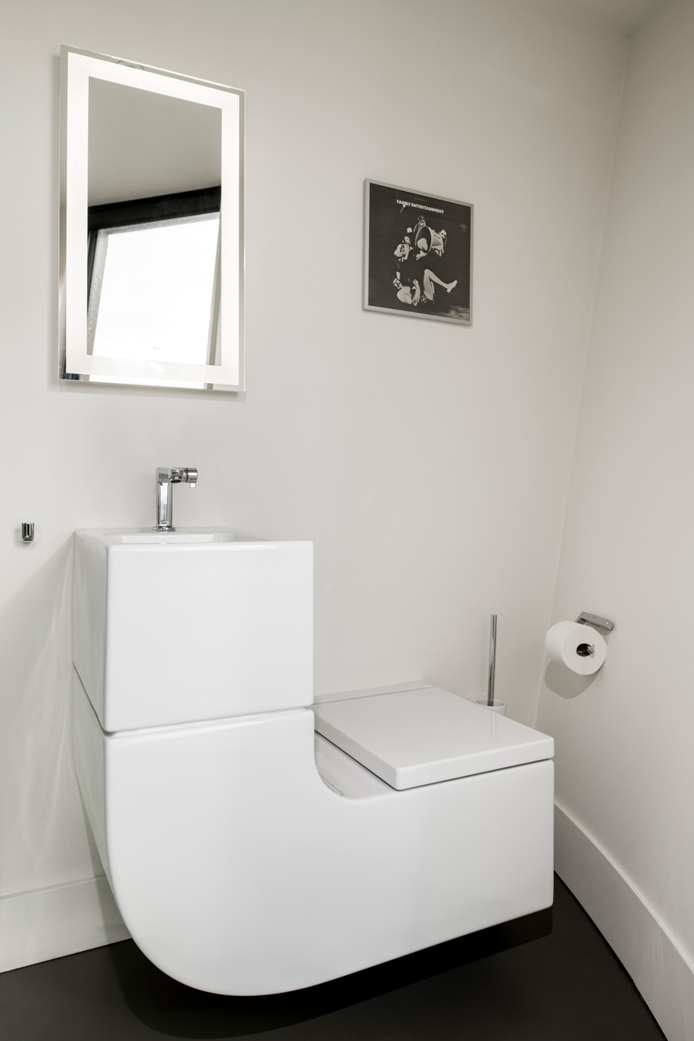 Roca contribuyó a la filosofía de eficiencia energética y diseño ecológico del edificio mediante su modelo W+W, un original concepto que permite ahorrar espacio al integrar el lavabo y el inodoro en una única pieza. Ideal tanto para espacios reducidos como para baños de tamaño estándar, esta solución refleja el compromiso de Roca con la innovación. Además de su silueta curvada y compacta, lo que distingue a este producto es su sistema de reciclaje de aguas grises, por el que el agua del lavabo se trata y se reutiliza para la descarga de la cisterna, ofreciendo así una solución respetuosa con el medioambiente que respalda los objetivos de sostenibilidad de la vivienda sin renunciar al estilo ni a la funcionalidad.